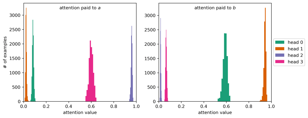 evenly between position 1 (the – sign) and position 3 (the = sign) — which means these heads are involved in an overall bias to the system, which I hope to explore later.